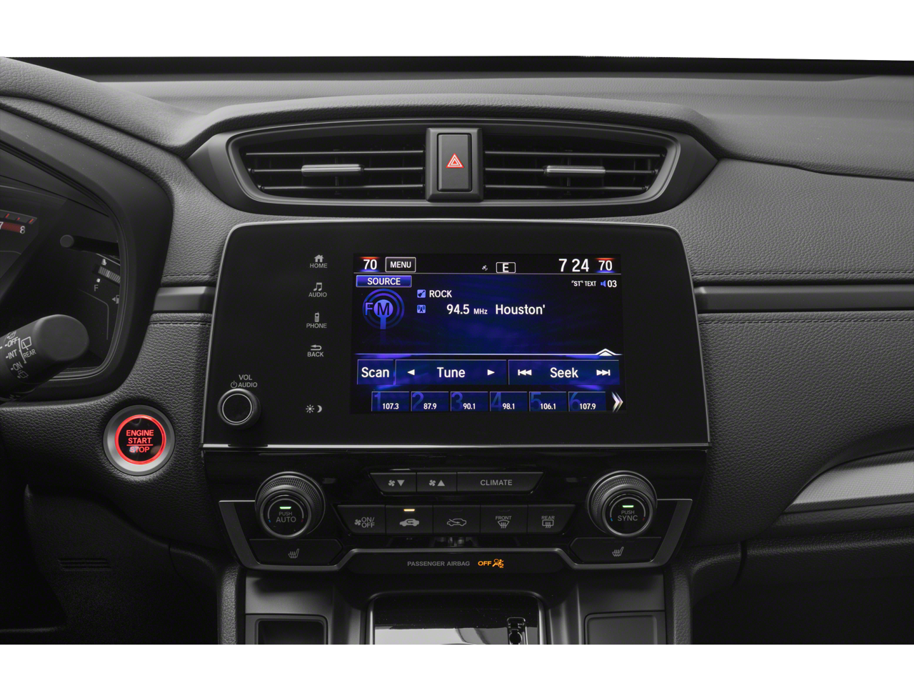 - Radio: 180-Watt AM/FM Audio System -inc: 6 speakers, 7" display w/high-resolution electrostatic touch-screen, customizable feature settings, compass, Bluetooth® streaming audio and HandsFreeLink, Pandora compatibility, Radio Data System (RDS), Speed-sensitive Volume Compensation (SVC), 1.0-Amp USB audio interface, 1.5-Amp USB smartphone/audio interface w/port in front console, HondaLink, Apple CarPlay integration, Android Auto integration and SMS text message function