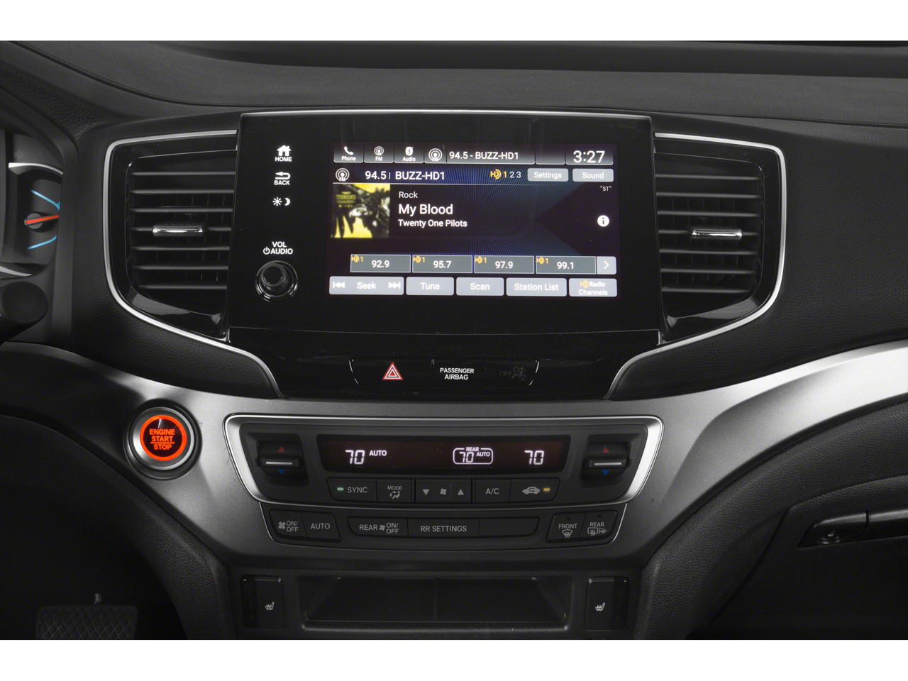 - Radio: 215-Watt Audio System w/7 Speakers -inc: subwoofer, 8" display audio w/high-resolution electrostatic touch-screen and customizable feature settings, Bluetooth® HandsFreeLink, Bluetooth® streaming audio, MP3/auxiliary input jack in center console, Radio Data System (RDS), Speed-Sensitive Volume Compensation (SVC), (3) 2.5-amp USB charging ports, 12-volt power outlets in front console, center console and cargo area, HondaLink, Apple CarPlay integration, Android Auto integration, CabinControl remote compatibility, SMS text message function, SiriusXM radio, HD Radio and 2.5-amp USB smartphone/audio interface port in front console SiriusXM services require a subscription after any trial period.