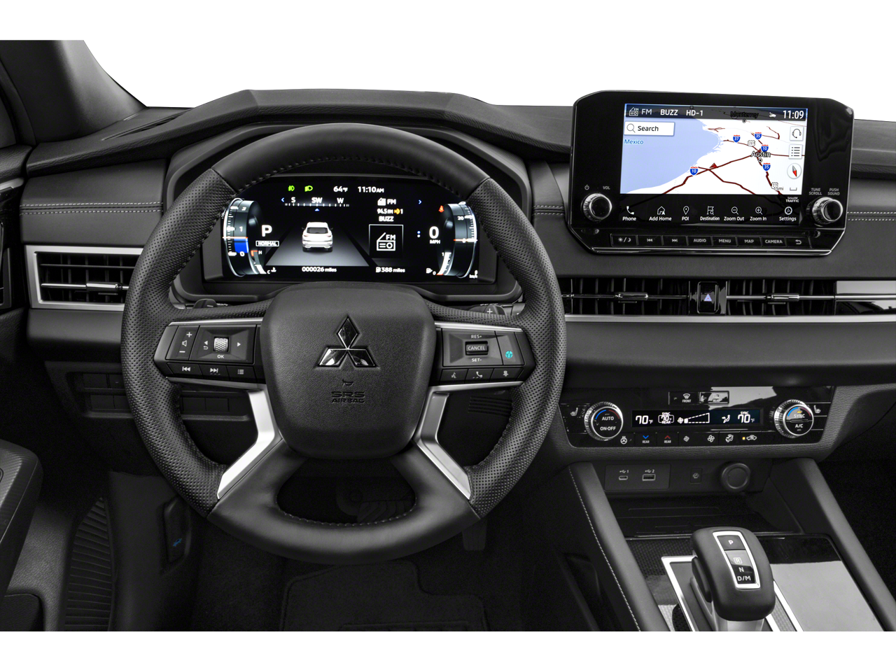 - Radio: AM/FM 9.0" Navigation w/Smartphone Link -inc: Bose premium sound system w/10 speakers, Apple CarPlay, Google Android Auto, SXM all-access and SXM traffic and travel link w/90-day subscription, Mitsubishi Connect, HD Radio, Bluetooth® wireless technology, steering wheel controls for phone, audio and voice recognition and USB ports