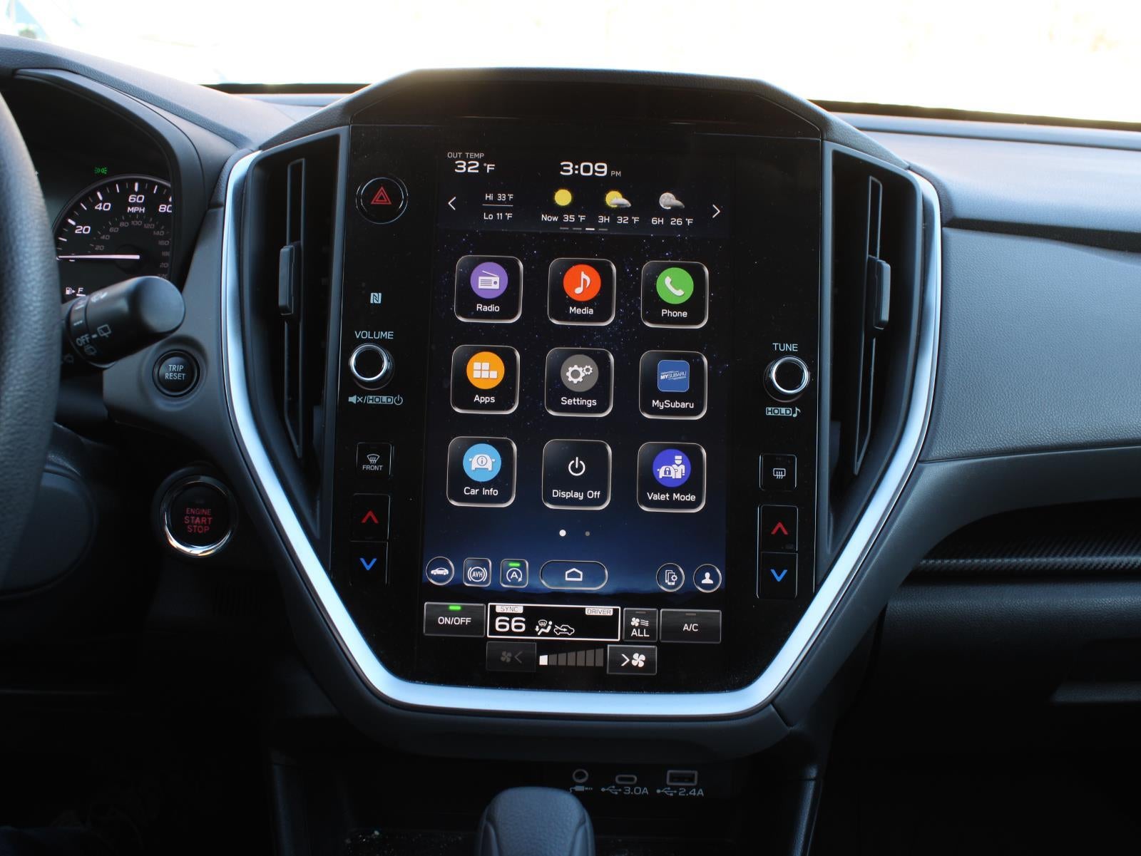 - Radio: Subaru STARLINK 11.6" Multimedia Plus Sys -inc: AM/FM stereo, HD Radio, multi-touch gesture high resolution display screen, voice activated controls, Bluetooth® audio streaming and hands-free phone connectivity, Bluetooth® hands-free SMS text messaging connectivity, iPod control capability, SiriusXM All Access Radio (4 months free trial included/subscription required after), SiriusXM Travel Link (4 months free trial included/subscription required after), smartphone integration: Android Auto and Apple CarPlay w/full screen view and wireless connection, USB and Over The Air (OTA) audio system update, steering wheel audio system and Bluetooth® control switches, 6 speakers (2 dash panel tweeter, 2 front door and 2 rear door), illuminated 3.5mm auxiliary input jack, illuminated front USB A and C input/charge ports and illuminated rear USB A and C charge ports